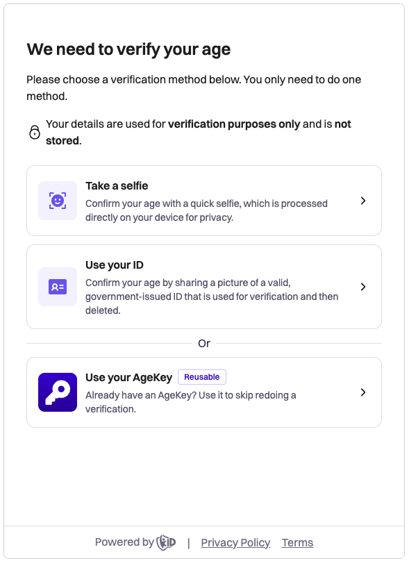This guide walks you through implementing age verification in just a few steps, allowing you to quickly meet regulatory requirements while providing a smooth user experience.