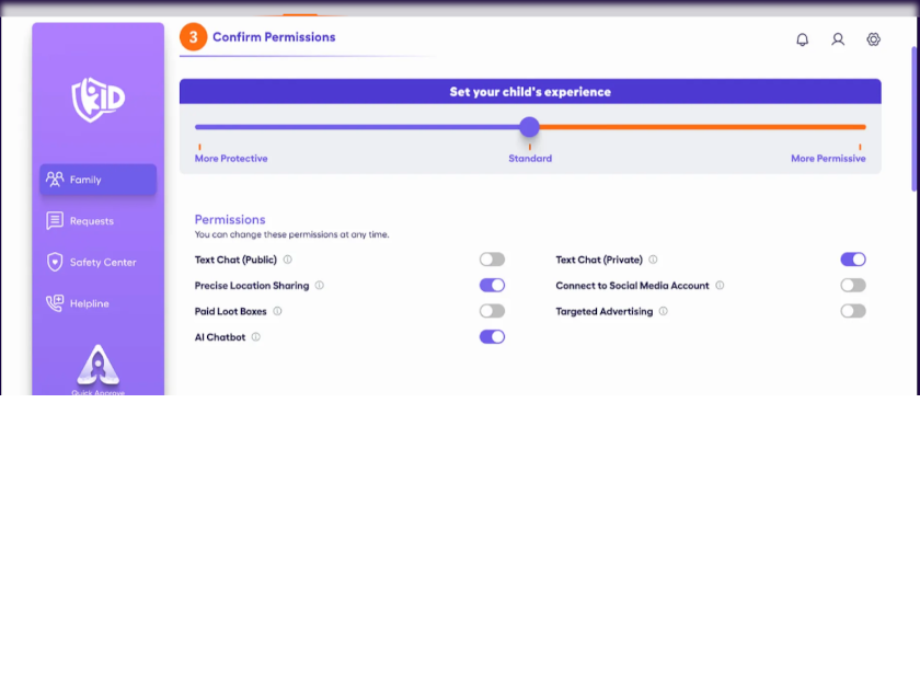 k-ID 글로벌 컴플라이언스 엔진 API를 통해 게임은 관할권에 따라 경험을 맞춤화할 수 있으며, 플레이어가 부모의 동의를 얻을 수 있습니다.